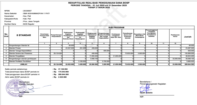 Laporan Realisasi Penggunaan Dana Bos Tahap 2 Tahun 2025 adalah sebagai berikut :