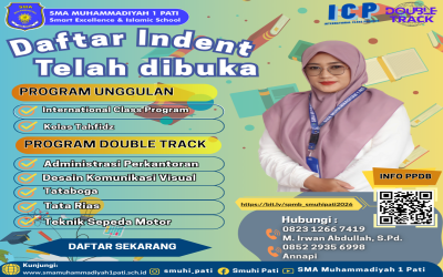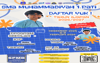 Telah dibuka Sistem Penerimaan Siswa Baru SMA Muhammadiyah 1 Pati Tahun Ajaran 2026-2027 secara online maupun offline. Untuk ONLINE bisa klik : https://bit.ly/FORMULIR_PPDB_SMUHIPATI_2025